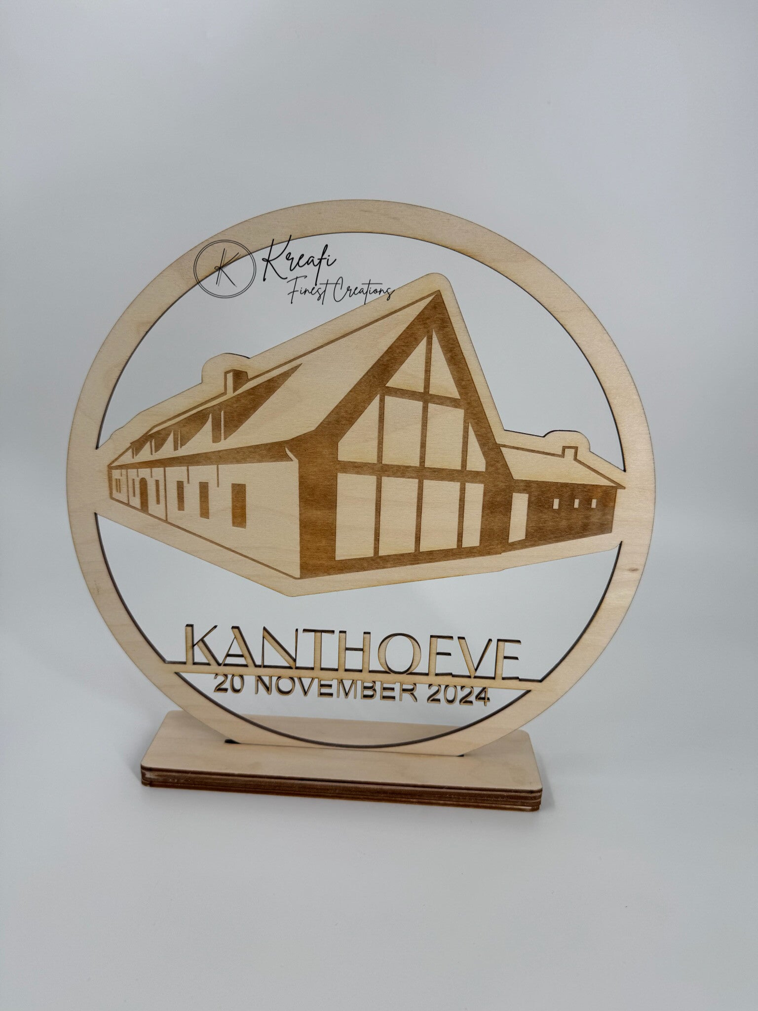 Houten naamcirkel als eye-catcher voor je doopsuiker of als decoratie voor de kinderkamer. Wordt steeds geleverd met houten voetje.